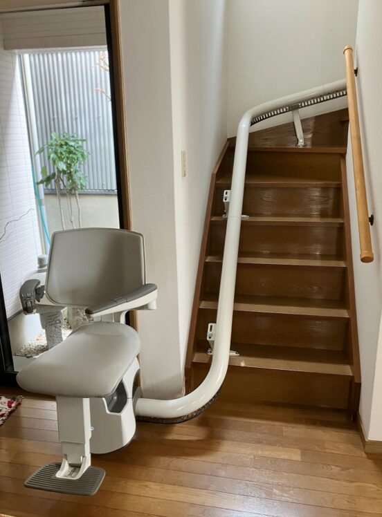 【新着順】階段昇降機の設置事例・お客様の声1階レールを横に逃がし、玄関ロビーを美しく演出