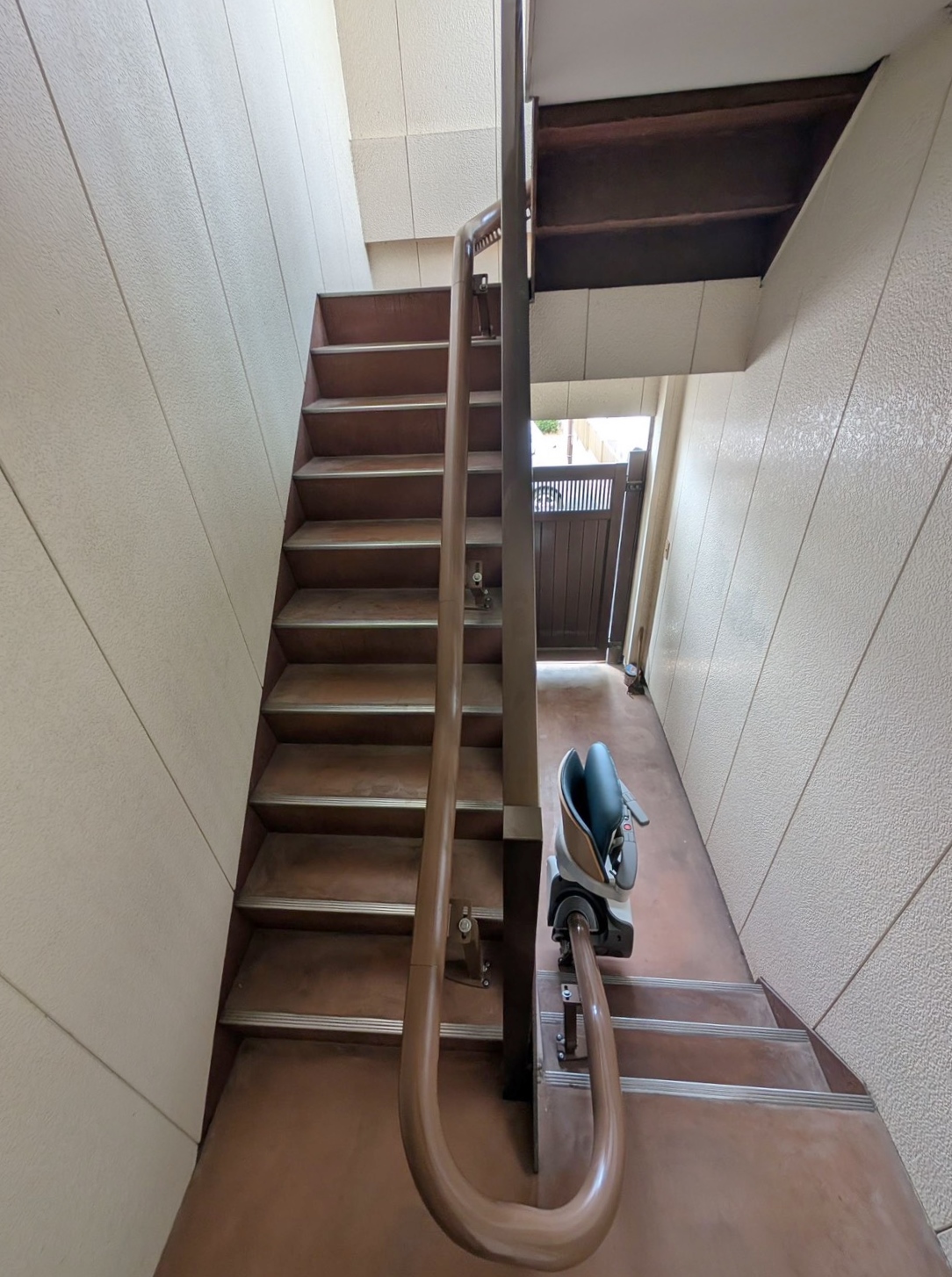 けれども可搬型は、操作するために必ず介助者が必要です。毎日のこととなると、ご家族の負担も大変です。 すぐにいす式階段昇降機のご検討を始められ、TKEのS200をご用命頂きました。